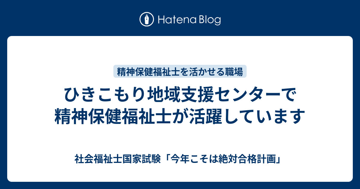 ひきこもり地域支援センターで精神保健福祉士が活躍しています 社会福祉士国家試験 今年こそは絶対合格計画